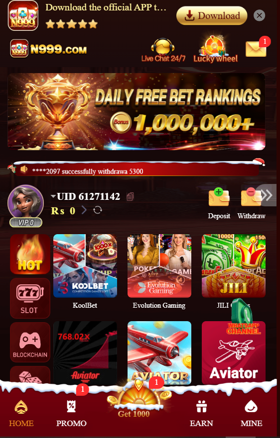 The app is made for Android users and focuses on smooth performance, quick loading, and easy navigation. Players can start with small deposits, enjoy daily rewards, and explore the best casino bonuses without confusion. What makes N999 different is its simple wallet system and reliable withdrawal process, which supports fast payouts directly to your account.